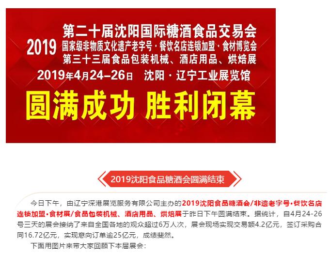 | 2019沈陽糖酒會(huì)/非遺老字號(hào)·餐飲名店連鎖加盟·食材展/食品包裝機(jī)械、酒店用品、烘焙展勝利閉幕! | |