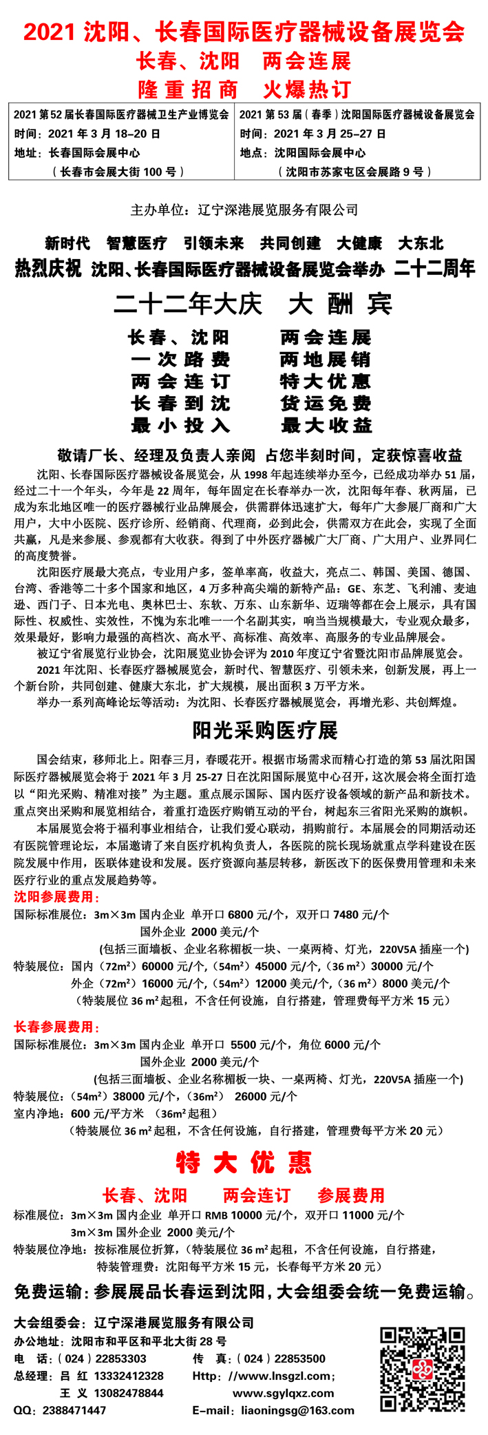 | 【兩會(huì)連展】2021沈陽(yáng)、長(zhǎng)春醫(yī)療器械展兩會(huì)連展隆重招商火爆熱訂 | |