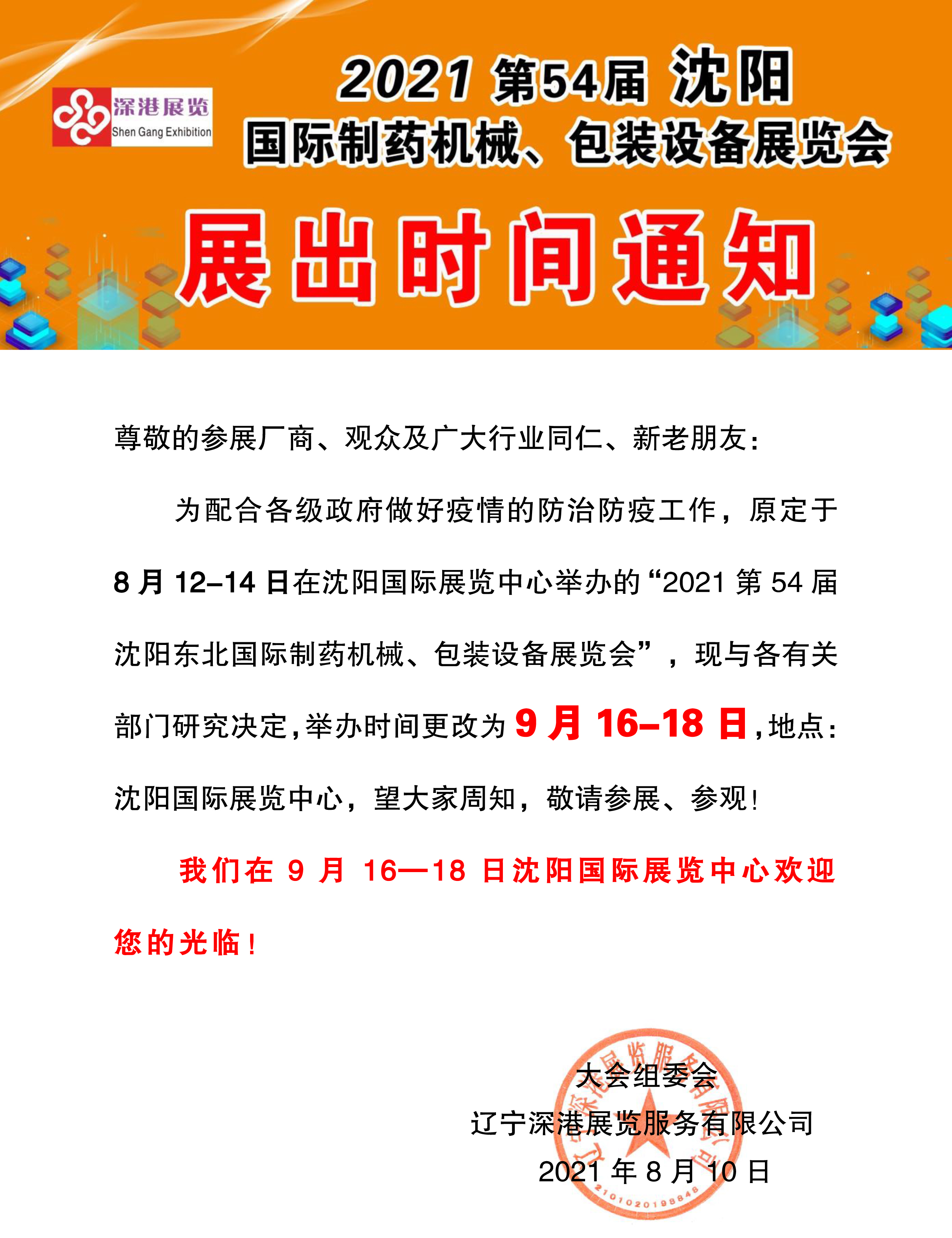 | 2021沈陽制藥機械展更改為9月16-18日在沈陽國際展覽中心舉辦!?。?/strong> | |