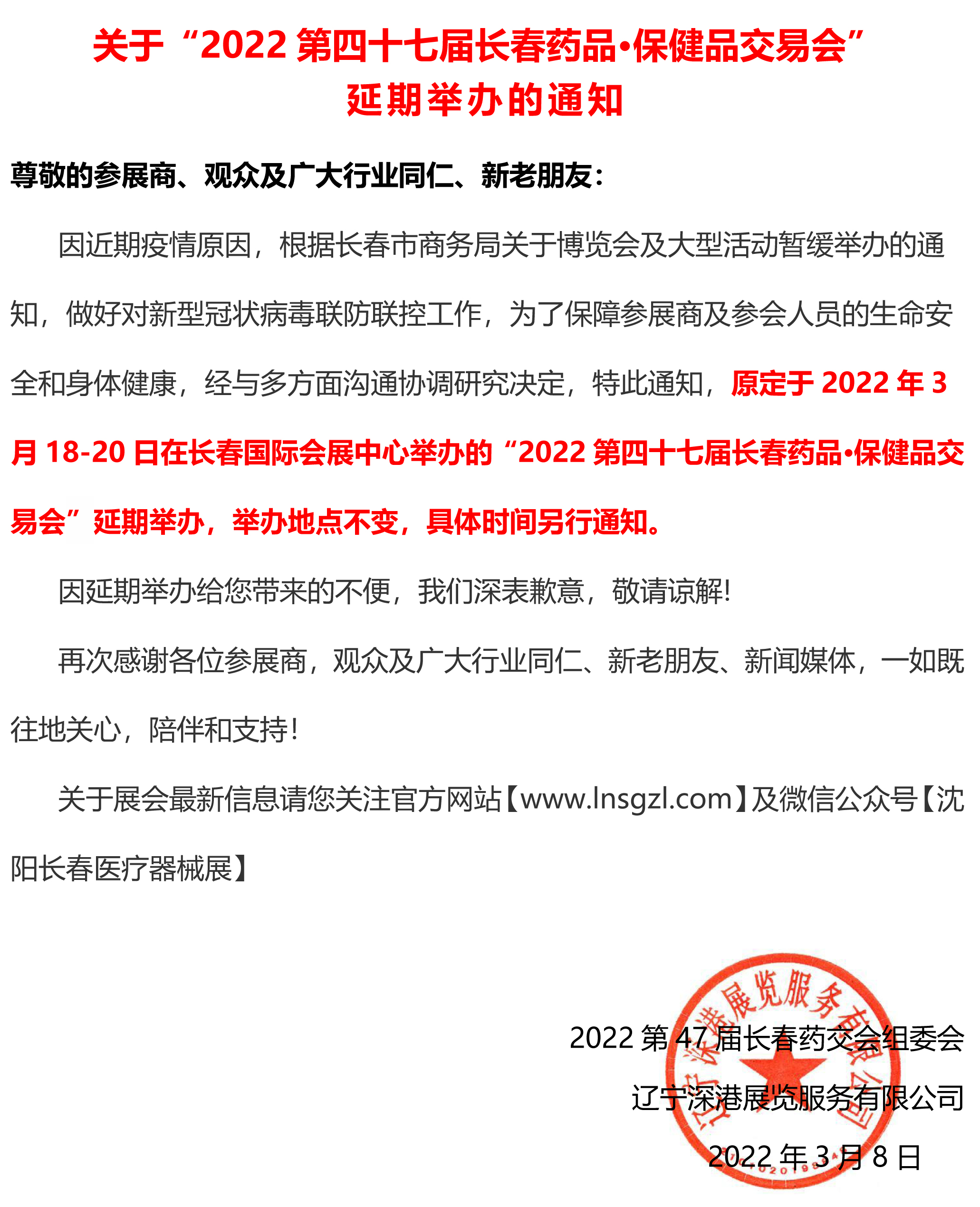 | 延期通知|2022第四十七屆長春藥品·保健品交易會 | |